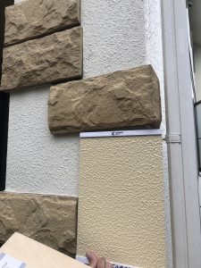 先日ご契約をいただいたお客様の、新しく塗装する色のご提案をさせていただいている最中の写真です。